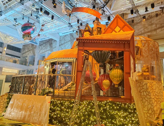 Beyond static displays, the mall’s kinetic installations brought the space to life with a touch of Christmas magic. A playful gingerbread-man hot-air balloon and a constellation of flying mechanical props carried starlight and gifts across the air, tracing warm and whimsical paths above the scene.
