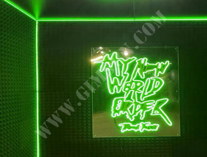 最近我们帮一录音房製作了一个非常炫酷的背景,里面应用了时下比较流行的LED霓虹灯元素,创意满满、动感十足!,该背景尺寸3000X3000MM, 凭借著丰富的製作经验,我们最后确定将整个背景分拆成四等份组装,既方便物流运输,又方便拼装。最特别是背景LOGO,使用LED 霓虹灯制作,现场呈现效果非常好,带出强烈的氛围感和现场感!